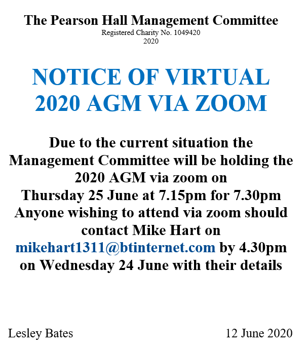 Pearson Hall is a registered charity managed by the Trustees of the Pearson Hall Management Committee. A Social Committee organises regular events.