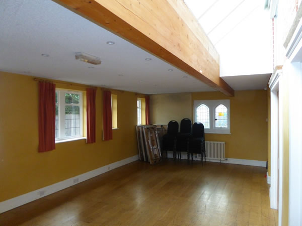 The Committee Room, roughly 7.0 x 4.0 m in area, is regularly used for meetings of small groups. The chairs and tables that are stored in the hall can be used to furnish the room in a suitable way for a variety of users.